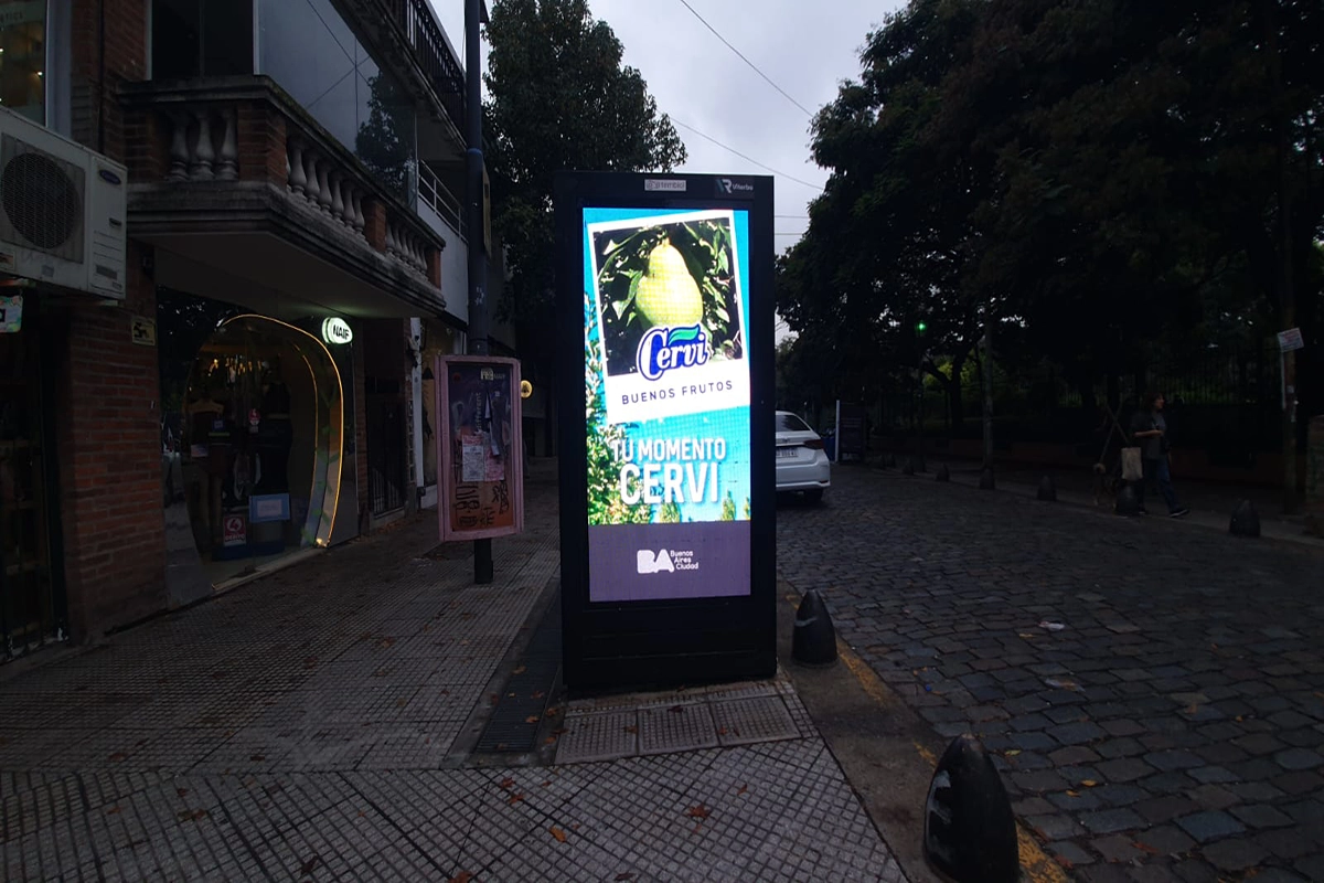 CERVI / BUENOS FRUTOS / MUPIS / MAYO 2024 01- Av. 9 de Julio y Lavalle 03- Av. C Pellegrini y Marcelo T de Alvear 08- Av. Figueroa Alcorta y Casares 09- Av. 9 de Julio y Marcelo T de Alvear ( Cerrito) 10- Av. del Libertador y Av. Olleros 12- Sarmiento y Figueroa Alcorta 16 – Av. del Libertador y Pueyrredón 17A- Av. Corrientes y Cerrito (Obelisco)_Cara Corrientes 22- Av. Rivadavia y Av La Plata 35- Av. Pueyrredón y Las Heras 64- Armenia y Costa Rica_Plaza Armenia 71- Av. Juana Manso y Martha Salotti_Hotel Faena 78- Av. 9 de julio y Arroyo