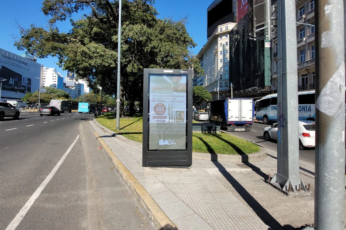 CLARIN / CUCHILLOS / MUPIS / JULIO 2024 09- Av. 9 de Julio y Marcelo T de Alvear ( Cerrito) 13- Av. del Libertador y Av. Cerrito 24- Av. Corrientes y Av. L. N. Alem (Luna Park) 40- Av. Las Heras y Salguero 42- Av. Santa Fe y Coronel Díaz 55- Av. Corrientes y Scalabrini Ortiz 57- Av. Coronel Diaz y Av. Las Heras 76- Av. 9 de Julio y Cerrito_Obelisco 89- Av. 9 de julio y Av. Independencia_UADE 94- Av. Santa Fe y Maipú_Plaza San Martín
