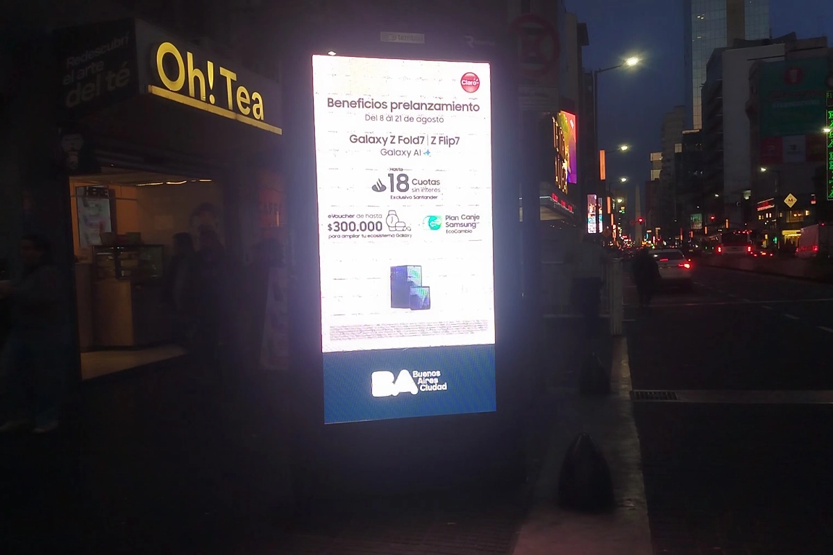 CLARO / SAMSUNG GALAXY Z FOLD PRELANZAMIENTO / MUPIS / AGOSTO 2025 SAMSUNG CLARO – 19- Av. de Mayo y Saenz Peña SAMSUNG CLARO – 19- Av. de Mayo y Saenz Peña- SAMSUNG CLARO – 41- Av. Coronel Díaz y Beruti_Alto Palermo SAMSUNG CLARO – 42- Av. Santa Fe y Coronel Díaz SAMSUNG CLARO – 60- Av. Corrientes y Av. Lacroze SAMSUNG CLARO – 106- Corrientes y Rodriguez Peña