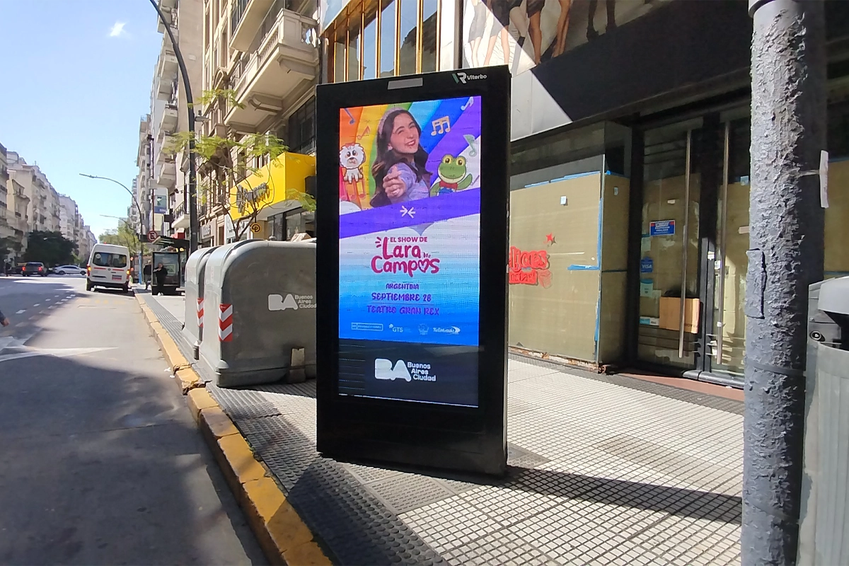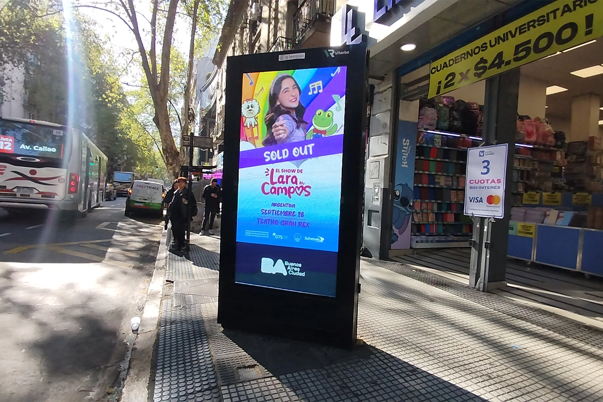 EB PRODUCCIONES / LARA CAMPOS / MUPIS / SEPTIEMBRE 2025 LARA CAMPOS – 01- Av. 9 de Julio y Lavalle LARA CAMPOS – 13- Av. del Libertador y Av. Cerrito LARA CAMPOS – 24- Av. Corrientes y Av. L. N. Alem (Luna Park) LARA CAMPOS – 39- Av. Figueroa Alcorta y Salguero_Paseo Alcorta LARA CAMPOS – 42- Av. Santa Fe y Coronel Díaz LARA CAMPOS – 47- Av. Cabildo y Jose Hernandez LARA CAMPOS – 65- Av. Santa Fe y Av. Callao (1) LARA CAMPOS – 65- Av. Santa Fe y Av. Callao LARA CAMPOS – 108 – AV. Corrientes y Florida.